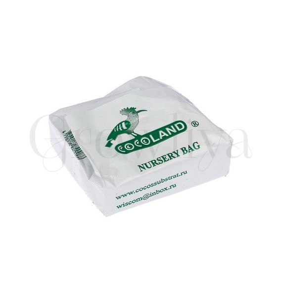 Кокосовые кубики вложены в пакет из черно-белой п\э пленки с открытым верхом, устойчивую к действию УФ-лучей. В нижней части имеет перфорацию для вытекания избытка влаги.