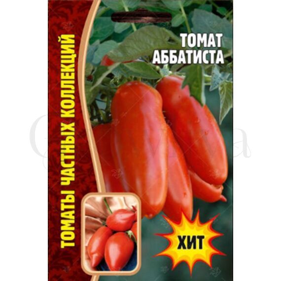 Томат Аббатиста /Abbattista/  США ( у некоторых зарубежных коллекционеров в каталогах встречается как: Abbittista, Abbattista paste). Индетерминантный, высокорослый 1,8-2,2 м), среднеспелый сорт. Необходима подвязка к опоре и пасынкование, формировать лучше в 1-2 стебля.  Плоды очень крупные, удлиненные, сливовидные с переменной формой, с острым носиком и без, мясистые, насыщенного красного цвета. Мякоть с малым количеством семян, не водянистая, очень хорошо сбалансированный вкус с преобладанием сладости. Сорт болезнеустойчив, вынослив. Идеальный томат для густых соусов и пасты.Сорт попал в США во время Второй мировой войны из Югославии в личную коллекцию семьи Аббаттиста, которая не только сохранила этот сорт, но и улучшила его, ежегодно отбирая семена с самых крупных и самых ранних плодов.