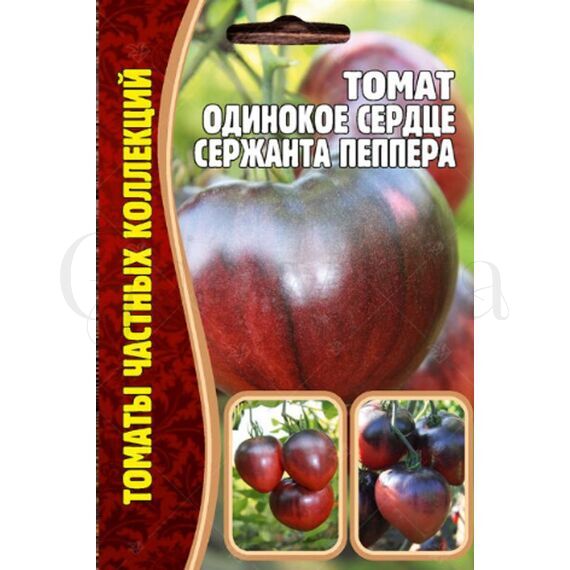 Томат Одинокое Сердце Сержанта Пеппера (Sgt. Pepper’s). Оригинатор - Джейсон Хайнц (Jason Haynes) США.  Отличный индетерминантный сорт для теплиц и открытого грунта на юге. Требует подвязки и пасынкования. Хорошо вяжет плоды на перепадах температур. Кисти сложные, по 8-10 плодов. Плодоносит с конца июля до заморозков, не теряет своих пищевых качеств при дозаривании и просто хранении. Плоды сердцевидные, 150-300 г, насыщенно-красные, с темно-фиолетовым пятном. Мякоть плотная, малиновая с ароматом и очень гармоничным сладким вкусом. Агротехника: посев на расаду за 50-60 дней до высадки на открытую грядку либо в теплицу. Для приготовления оптимального грунта для рассады нужно сделать смесь из обычного грунта и цеолита. Пропорция: 4 части грунта и 1 часть цеолита. При высадке рассады добавьте 40-50 г цеолита в лунку. Результат вас удивит и порадует.