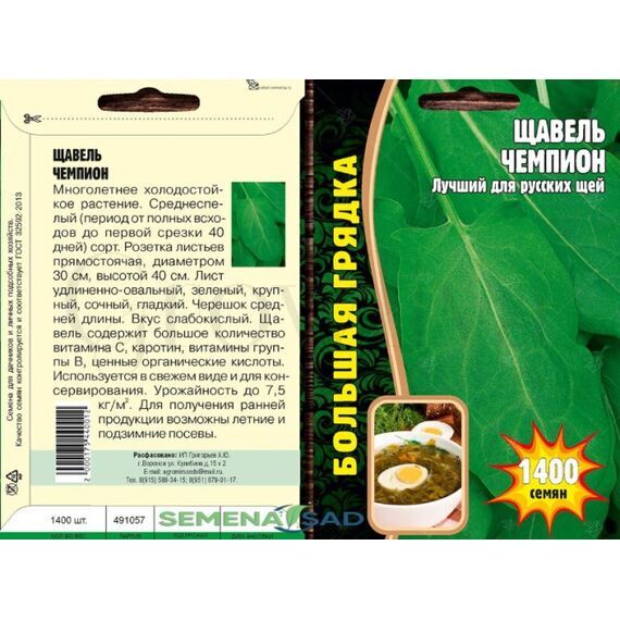 Купить Щавель Чемпион РЕДКИЕ СЕМЕНА в интернет магазине ГровЛия - по выгодной цене. Щавель Чемпион РЕДКИЕ СЕМЕНА: характеристики, отзывы, описание, обзор, фотографии. Инструкция по применению в комплекте.