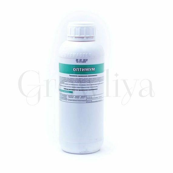 Оптимум – удобрение на основе ортофосфорной кислоты с индикатором рН, буферными добавками и поверхностно-активными веществами. С его помощью можно в полевых условиях определить и довести до оптимума рН используемой воды, снизить содержание солей жесткости (смягчить воду), сделать однородной и стабилизировать многокомпонентную смесь, снизить поверхностное натяжение раствора и увеличить кутикулярную проницаемость, повышая общую эффективность химической обработки.