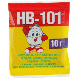 Стимулятор роста НВ-101 — продукт, ускоряющий развитие любых растений: деревьев, комнатных и уличных цветов, овощных культур, грибов, газона и т. д. Изготавливается на основе энергетических вытяжек (экстрактов) растений: эвкалипта, японского кедра, сосны, подорожника. Обогащен цеолитом, который способствует улучшению структуры грунта. Одного пакетика виталайзера достаточно для обработки площади в 10 м².