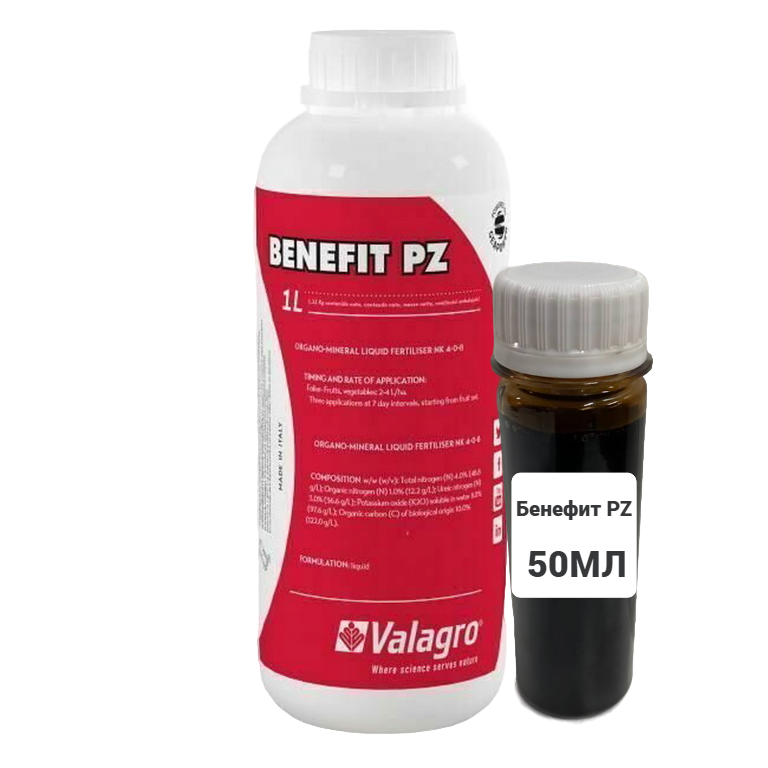 BENEFIT® PZ рекомендован для плодовых (косточковые, киви) и для бахчевых культур (арбузы, дыни, тыквы, огурцы и т. д). BENEFIT® PZ содержит нуклеиновые кислоты, витамины, белки и свободные аминокислоты.