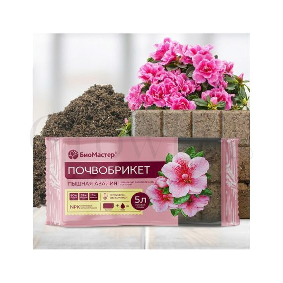 Купить БиоМастер Почвобрикет Пышная Азалия 5 л в интернет магазине ГровЛия - по выгодной цене. БиоМастер Почвобрикет Пышная Азалия 5 л: характеристики, отзывы, описание, обзор, фотографии. Инструкция по применению в комплекте.