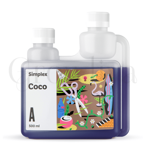 Удобрение SIMPLEX Coco A -это первая часть комплексного удобрения для всего жизненного цикла растения; которое специально разработано для выращивания на кокосовом субстрате, в гидропонных системах любого типа, кроме реверсивных.