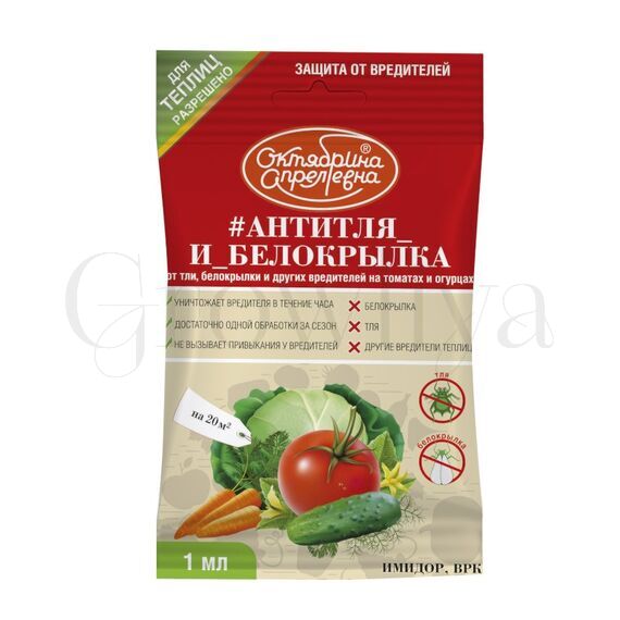 Купить Октябрина Апрелевна Антитля и белокрылка овощи ВРК 1 мл в интернет магазине ГровЛия - по выгодной цене. Октябрина Апрелевна Антитля и белокрылка овощи ВРК 1 мл: характеристики, отзывы, описание, обзор, фотографии. Инструкция по применению в комплекте.